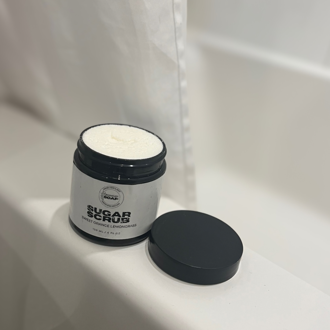 The luxurious foaming whipped sugar scrub is a versatile 3-in-1 product that effectively cleanses, moisturizes, and exfoliates your skin. The natural sugars in this scrub gently exfoliate dead skin cells, leaving your skin feeling rejuvenated, soft, healthy, smooth, and refreshed. Infused with essential oils, it elevates your senses, creating a spa-like experience within the comfort of your home.  This scrub turns your skincare routine into a delightful ritual. Perfect for all skin types.